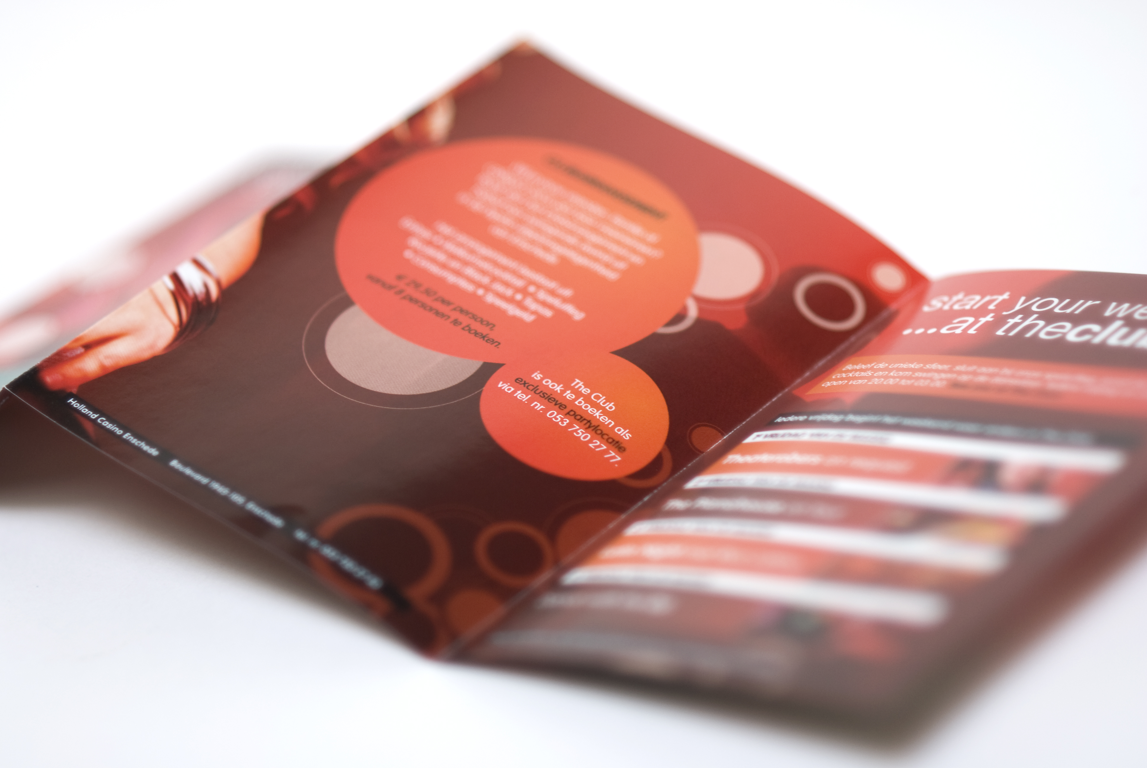 Bedenk een visueel concept voor Holland Casino The Club Enschede dat als basis dient voor de implementatie van de shop-in-shop concepten voor alle casino’s in Nederland. Groot aandachtspunt hierbij was dat er rekening gehouden moest worden met de destijds bestaande huisstijl van het moedermerk Holland Casino, maar waar de identiteit van The Club ook duidelijk naar voren kon komen.